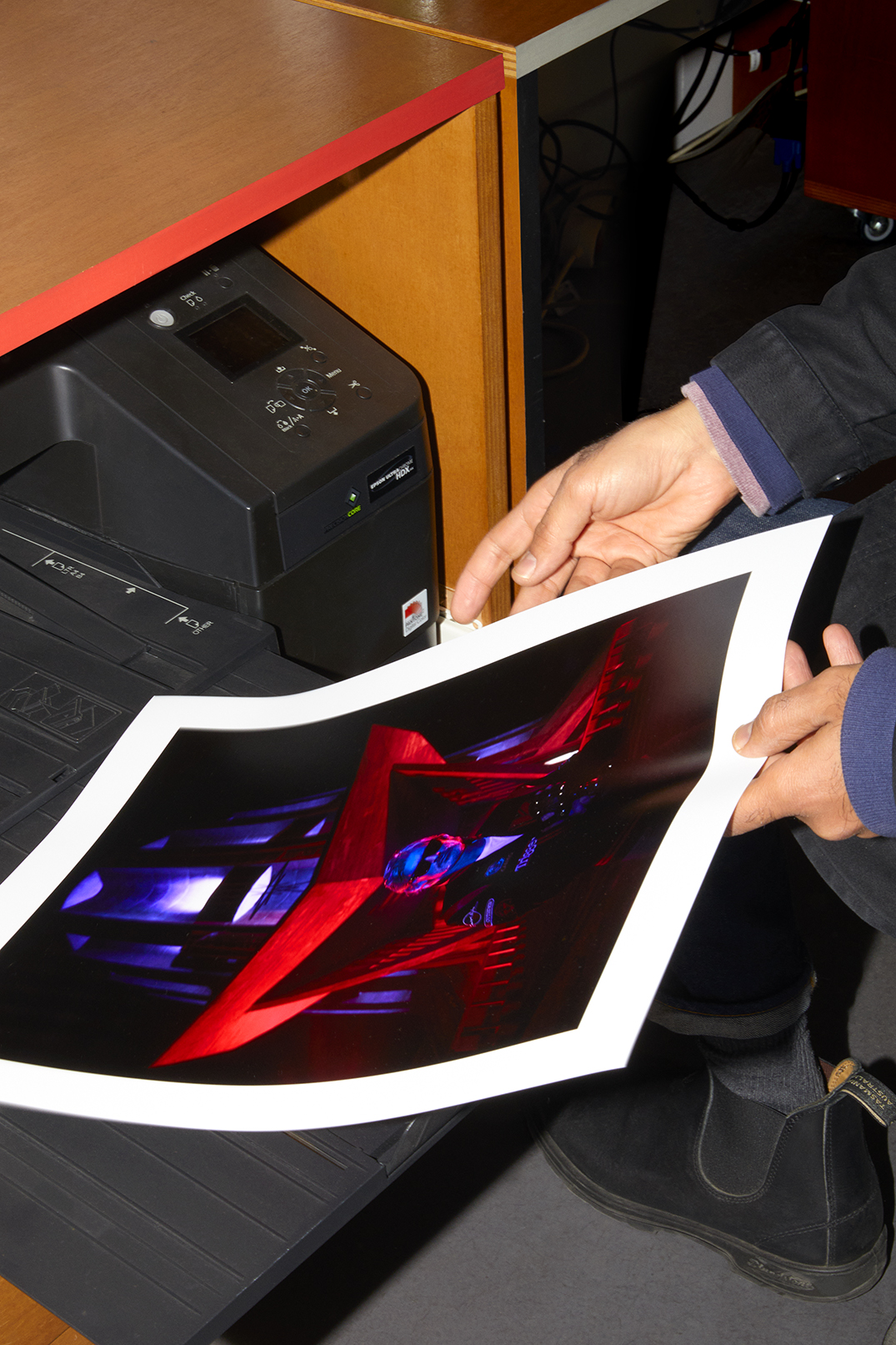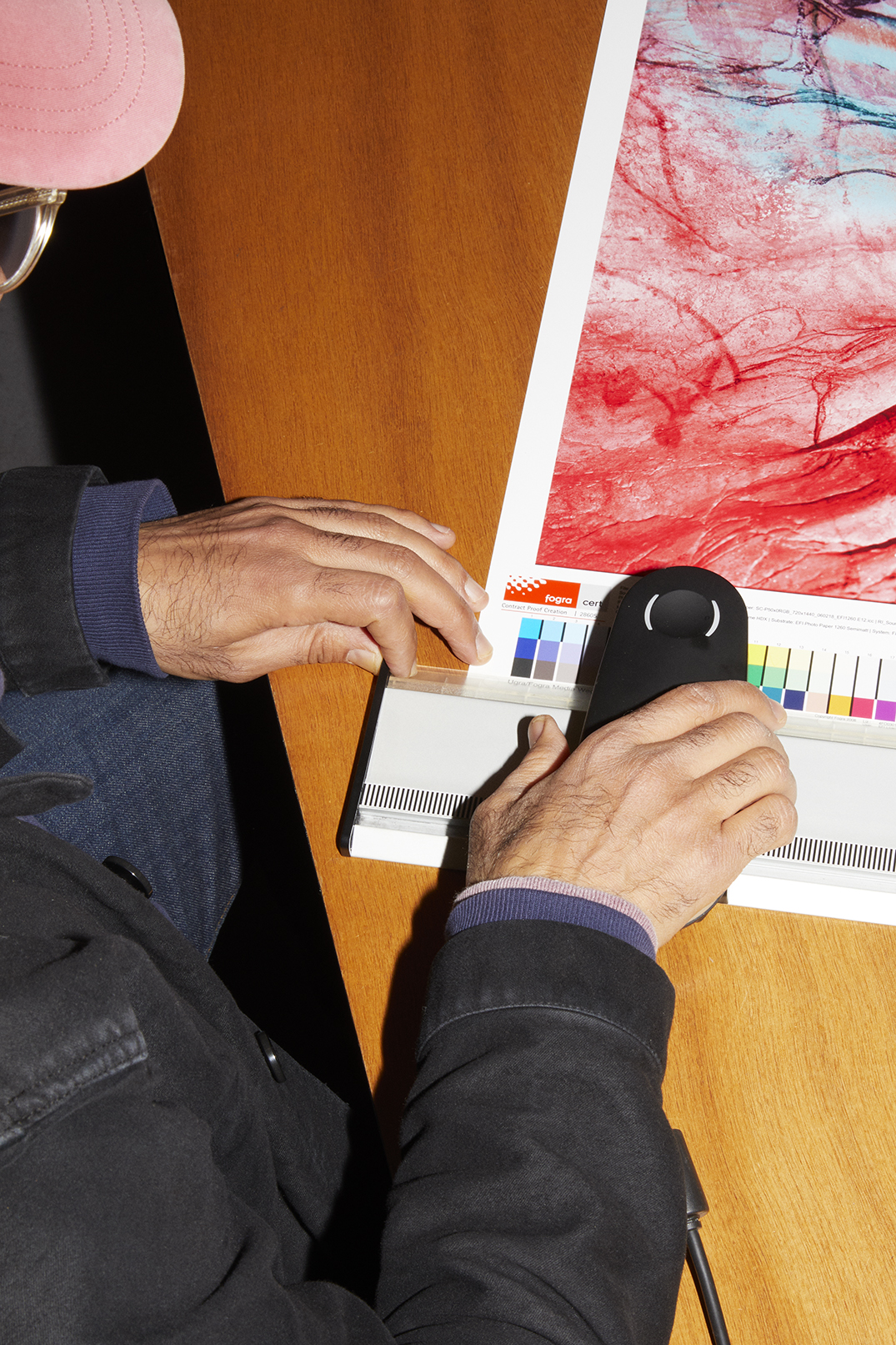 Que son intervention ne prenne jamais le pas sur la photographie elle-même, qu’elle agisse en toute discrétion, s’incline derrière la création qu’elle sert. Un travail de minutie, d’exigence, de détail, comme celui d’un artisan, où l’œil, la main, le geste, l’expérience, sont à l’œuvre. Une question de temps avant tout,où chaque image est abordée à nu, à l’aide d’outils performants. Développement, retouche, intégration, calage chromie, impression, tirage certifié… Les étapes sont balisées, le processus strict, et le nom qu’il s’est choisi pour travailler dans le secteur de la beauté, de la mode et du luxe n’y est pas indifférent. Si on l’aime, on ne badine pas avec l’image.
